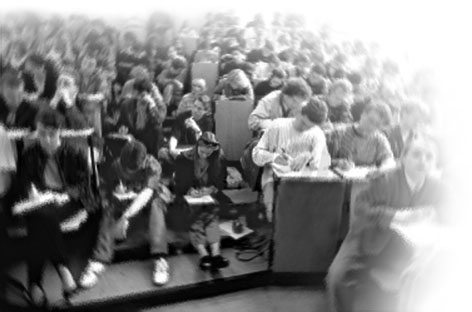 sehen sich aufgrund der überfüllten Hörsäle, der ausgeliehenen
