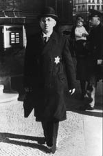 gelben Stern auf der Jacke drängelt sich zu ihr durch um ihr zu helfen.