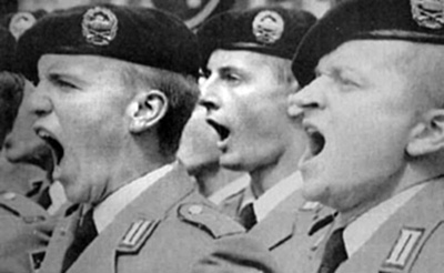in die Gelöbnisaufstellung, als die Rekruten den Gelöbnisschwur sprechen