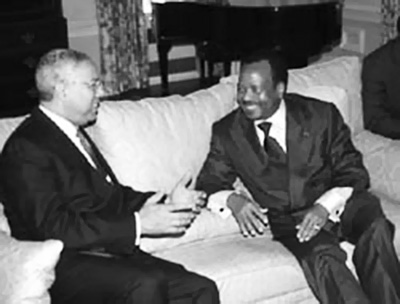 Oben: US-Außenminister Powell mit Kameruns Paul Biya